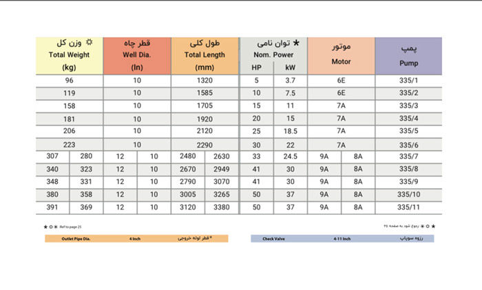 - کاربرد : تامین آب آشامیدنی، تامین آب فرآیندهای صنعتی، آبیاری، تخلیه آب معادن، جبران فشار (بوستر ) طرحهای آبرسانی ، پمپاژ از مخازن ، برداشت آب خام از رودخانه و دریاچه سدها ، برداشت آب از دریا ، برداشت آب از چاههای عمیق، نیمه عمیق و آتش نشانی. .