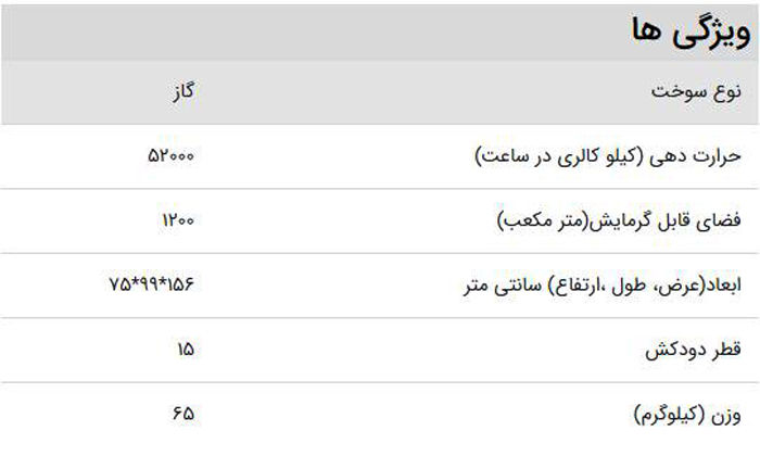 • فضای قابل گرمایش : 900-1200 متر مکعب