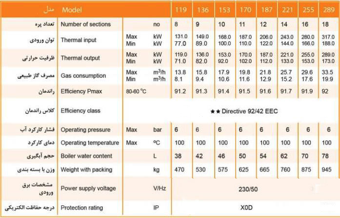 - ظرفیت حرارتی : 248540 کیلوکالری برساعت