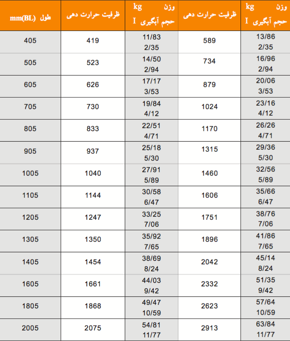 - ظرفیت حرارتی : 1247 کیلوکالری برساعت