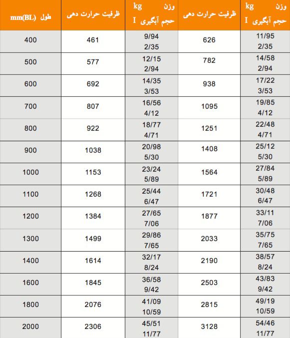 - ظرفیت حرارتی : 1845 کیلوکالری برساعت