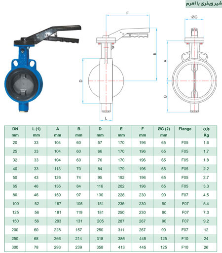 • نوع شیر : پروانه ای بدون فلنچ (ویفری)
