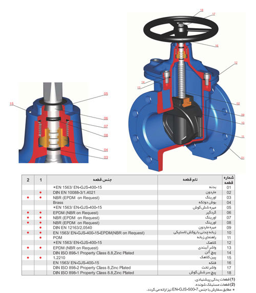 قطعات شیر کشویی سایز 100 زبانه لاستیکی 10 بار میراب شامل موارد زیر می باشد: