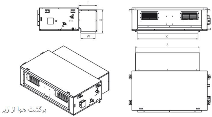 عرض مدل برگشت هوا از پشت و زیر 1307 میلیمتر