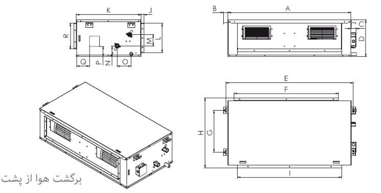 عرض مدل برگشت هوا از پشت و زیر 1400 میلیمتر