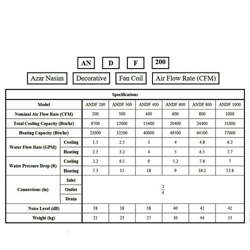 - شرکت سازنده ی فن کویل : آذر نسیم