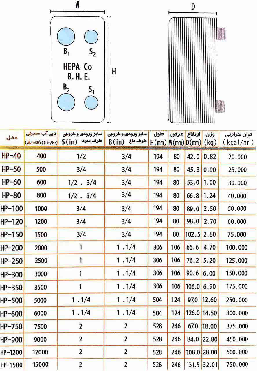 - سایز لوله ورودی و خروجی : طرف گرم 1/4 . 1 اینچ