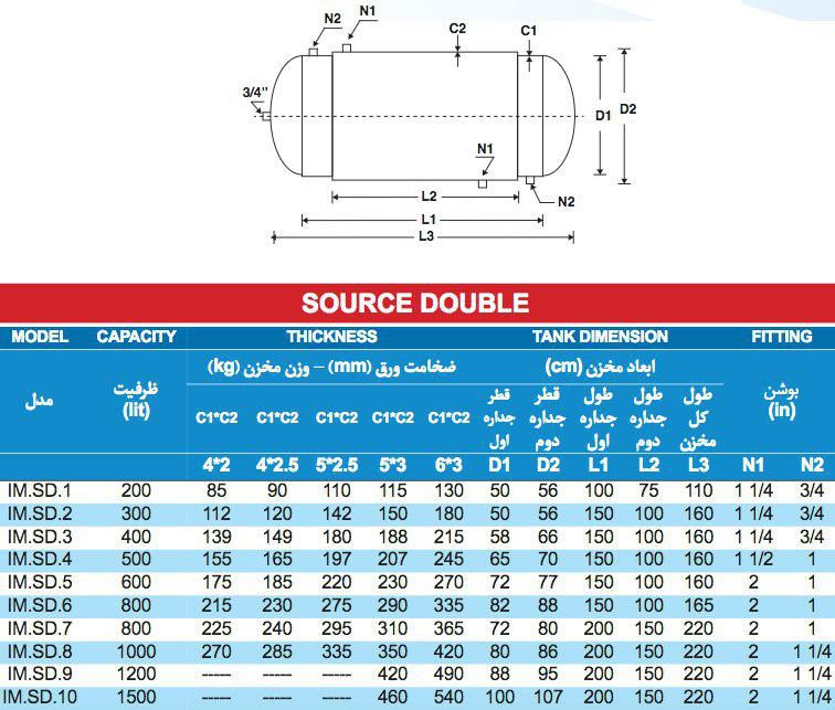 منبع دو جداره 800 لیتری با ضخامت 3-5 بامین تهویه