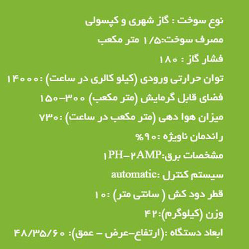 • ظرفیت حرارتی : 14000 کیلوکالری برساعت