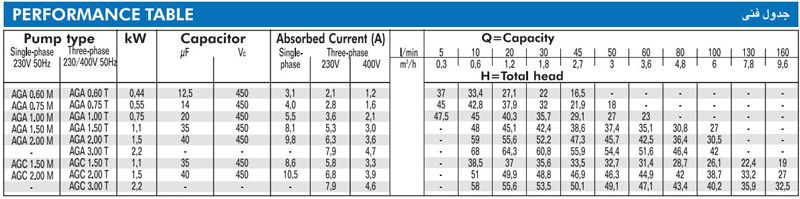 پمپ آب ابارا خودمکش مدل AGA 2 M/T