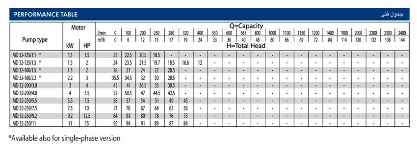 • سایز لوله مکش : 50-65-80-100125-150-200-250 میلیمتر