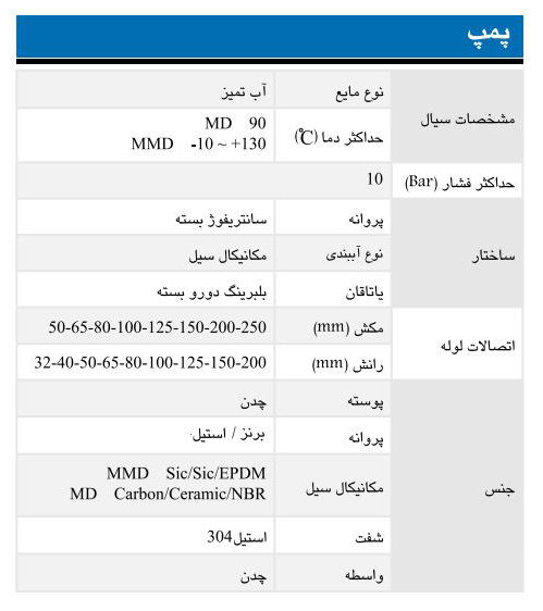 • نوع آب بندی : سیل مکانیکی