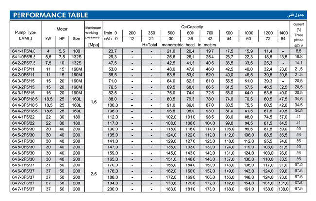 پمپ آب ابارا طبقاتی عمودی مدل EVM 64 3-2F5/15