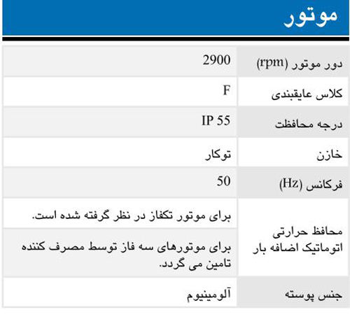 • دور موتور : 2900 دور در دقیقه