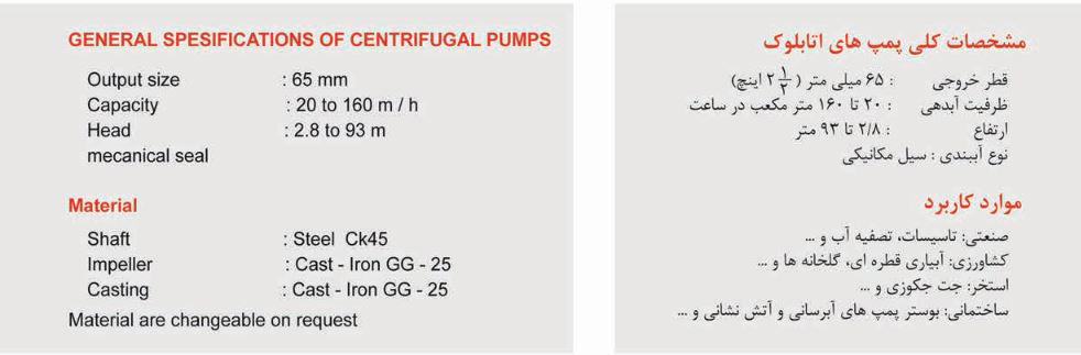 • سایز لوله ورودی و خروجی : ورودی : 80 ، خروجی : 65 میلیمتر