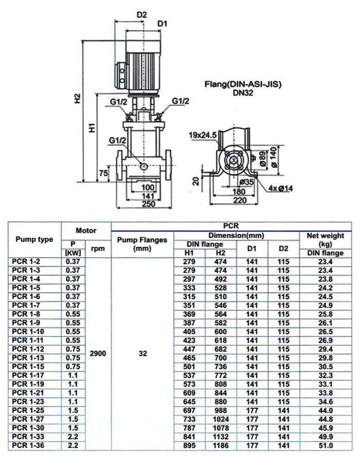 PUMPIRAN Multistage Water pump PCR1-13