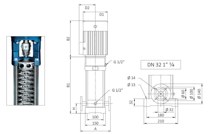 پمپ آب عمودی طبقاتی سیستما مدل MVS 4-4