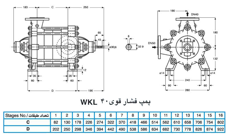 پمپ آب فشار قوی پمپیران مدل WKL40-6 با موتور 2900 دور