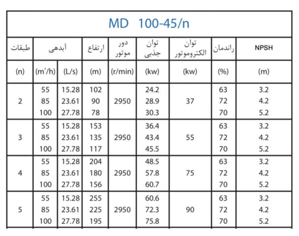 پمپ آب پمپیران فشار قوی طبقاتی مدل MD 100-45/3