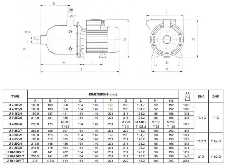 Pentax Horizontal Water pump U 18-400/4T