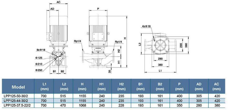 پمپ سیرکولاتور خطی لئو مدل LPP125-37.5-22/2