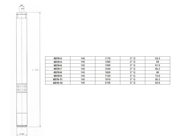 Pentax Centrifugal Submersible Pumps 6S70-7