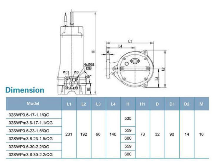 LEO Sewage Submersible Pump 32SWP3.6-30-2.2-OG