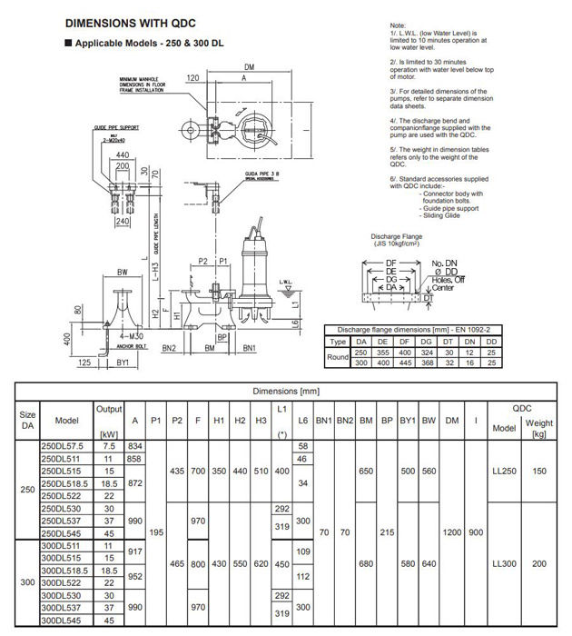 - لوازم جانبی : جعبه حاوی اتصالات، زانویی و فلنج و پیچ، مهره و واشر - تجهیزات نصب ثابت شامل : گاید و پایه و زنجیر مخصوص .