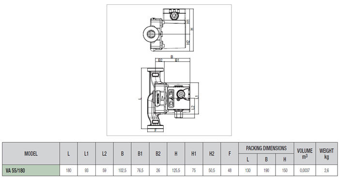 پمپ سیرکولاتور خطی داب مدل VA 55/180