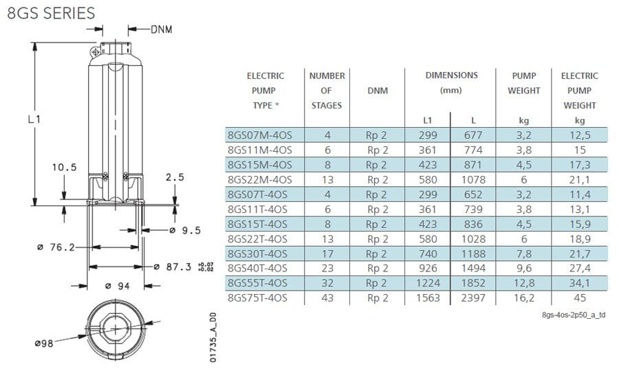 Lowara Stainless Steel Submersible Pump 8GS22M