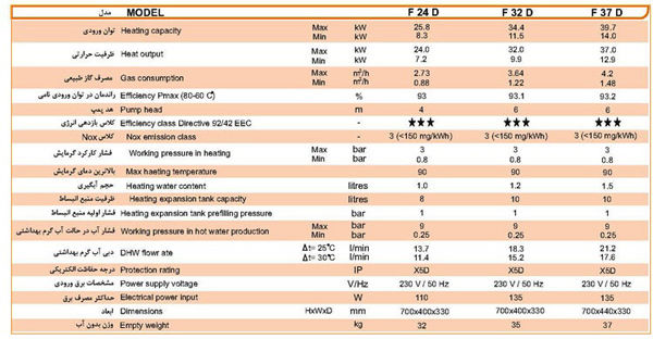 • حداکثر فشار مدار گرمایش : 3 Bar