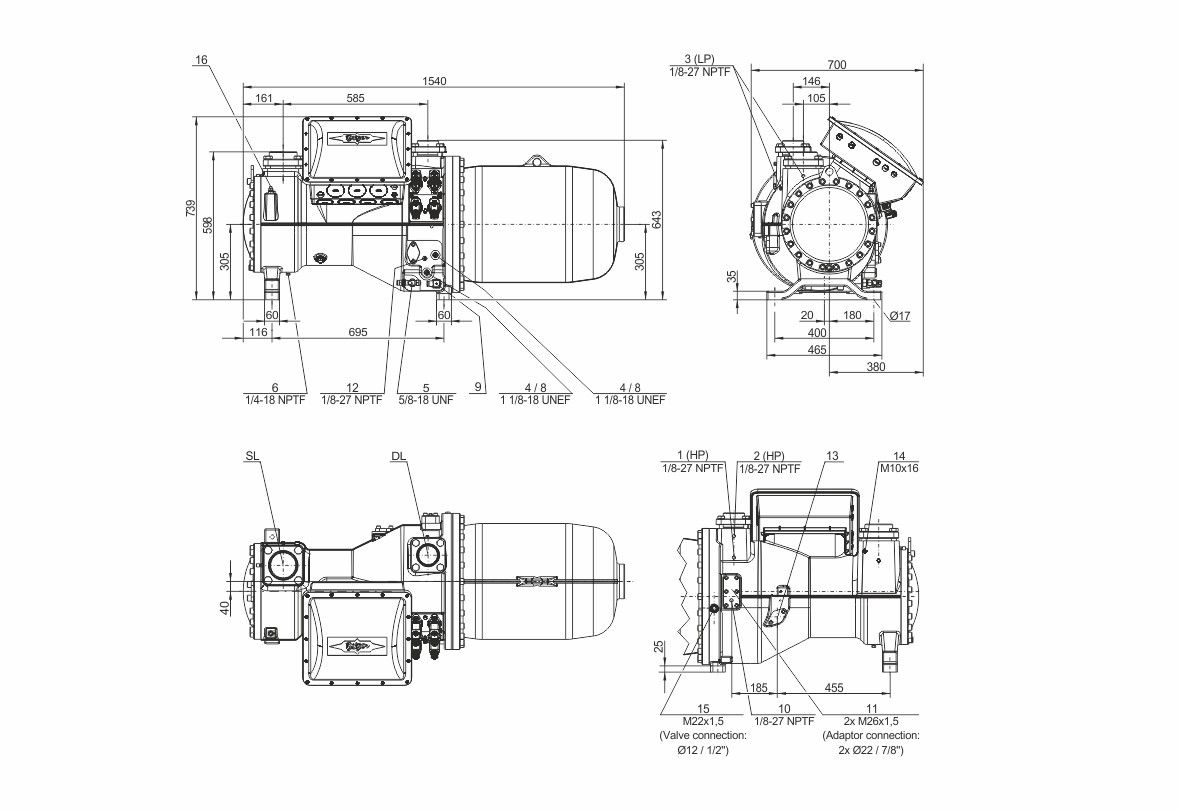 - ابعاد کمپرسور : 585*695*1540 میلیمتر