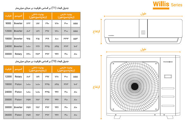 • ویژگی ها : دارای سیستم تشخیص نشت مبرد، پرتاب باد چهار جهته، مجهز به turbo cooling .