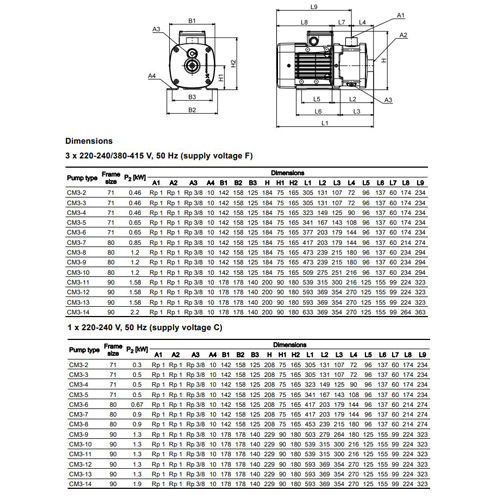 - دبی : حداکثر 9 متر مکعب بر ساعت