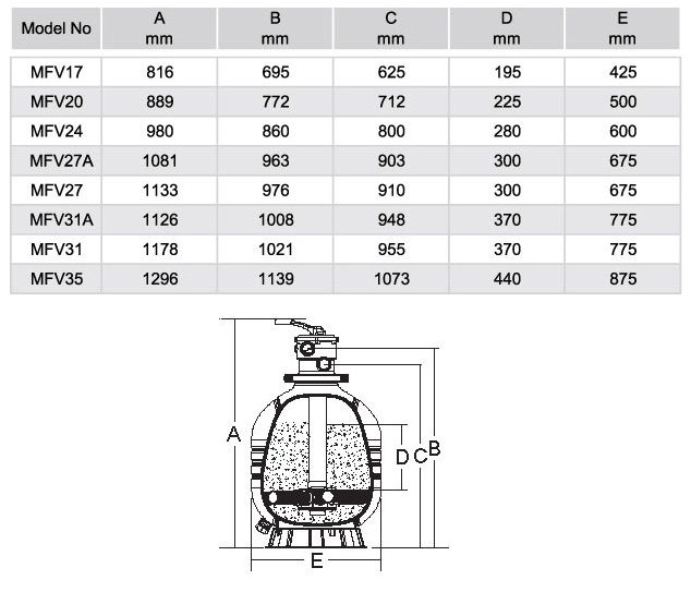 فیلتر شنی فایبر گلاس MFV 17 ایمکس جهت تصفیه استخر یا جکوزی باحجم آب 27.5 تا 58.6 متر مکعب می باشد.