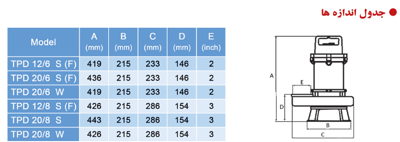 • کاربرد : تخلیه آب های صاف یا گل آلود , تخلیه آب های دارای املاح با غلظت پایین , لجن , فاضلاب های خانگی و صنعتی , باتوجه به میزان آبدهی ، ارتفاع و نوع مایعات .
