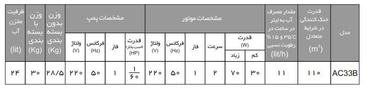 - موتور کولرآبی AC33B دارای دو دور کند و تند می باشد.